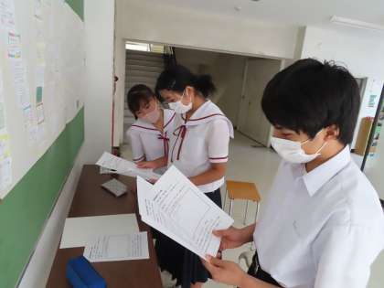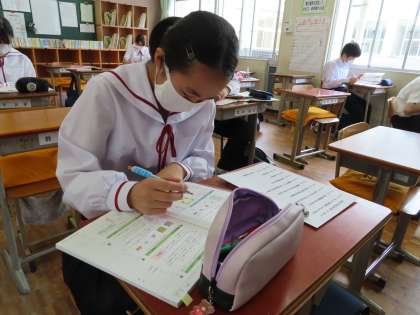 時々先生方が教室に来て、提出物の確認をしていく姿があります。自主学習を進めるのは大変ですが、このときに私たちが試されているかのようです。「どこまでできるの?」人類が壁に当たったときの乗り越え方です。