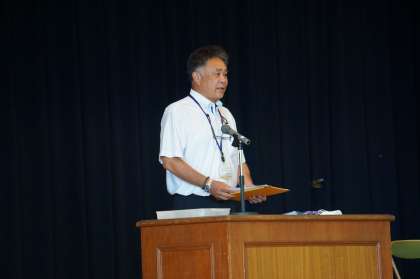 始業式校長式辞です。久々に生徒の皆さんに会えたことで、やっと学校が始まるという実感をもつことができたことからお話が始まりました。そして校長先生の大学時代の義足を使っていた友人の努力された姿から、頑張る気持ちを大切にすることと、頑張っている人には周囲から助けが来ることを話されました。