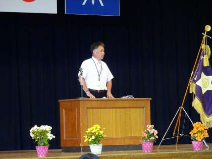 校長先生の式辞です。ようやく入学式を行うことができ、新入生全員に会うことができたことを嬉しく思うことから始まりました。続いて、入学説明会で、3つのものを持って入学してほしいことについて再度話されました。頷いている生徒が多かったことが印象的でした。早く学校生活に慣れ、一生懸命頑張ってほしいと結ばれました。