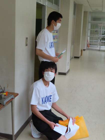 身長・体重も計測の後には消毒液が準備されていました。足の裏などを自分で消毒しています。技術室にも視力検査の機器があり測定がありました。