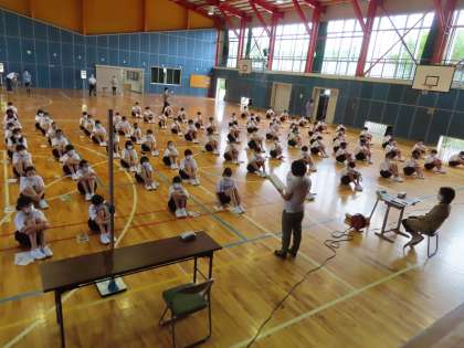 1年学年主任の鈴木浩光先生から、朝の登校時間についての話がありました。1年生はうれしくて早く学校に来る生徒が多く、下駄箱前が「密」になってしまうので、もう少し時間をずらしてきてください。と話がありました。