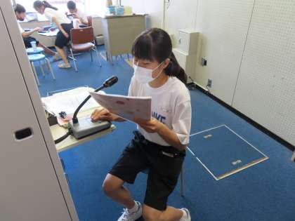 全校生徒が集まることができないため、放送を使っての1年生と2.3年生の対面式を行っています。学校生活の説明や部活動の紹介を放送で行っていました。