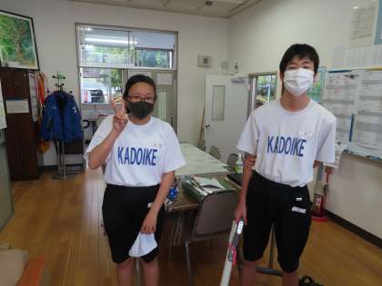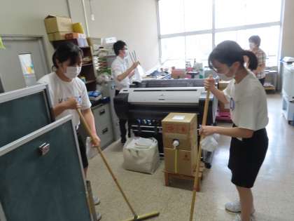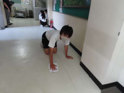 6月に入り初めての清掃です。それぞれ分担場所に向かい掃除が始まりました。本校は默働清掃です。静かに一生懸命に掃除をしています。はじめは、校長室清掃の「星野光咲さん」と「林 琉聖さん」です。よろしくお願いします。