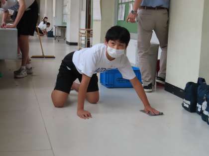 カメラ目線の生徒は、声をかけました。こっちを向いてほしかったのです。掃除中に申し訳ありませんでした。