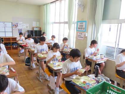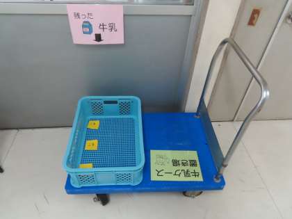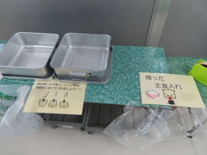 食べ終わったら、ハミガキをして片付けです。配膳室前には、片付けやすい様にゴミ置き場が設置してありました。