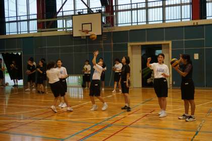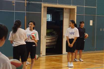 女子バレー部は、ボールを使ってサーブ練習をしていました。上級生のような速くて強いサーブを打てるよう、毎日練習していきましょう。