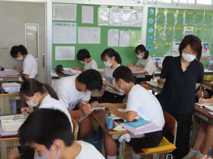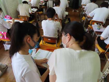 3Aは英語でした。加藤先生とT2で山開先生がいてくださいました。質問があり、手を挙げていると、すぐに山開先生が駆けつけてくれます。