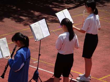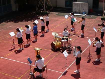 吹奏楽部の演奏は、音が校舎に跳ね返ってとてもよかったです。