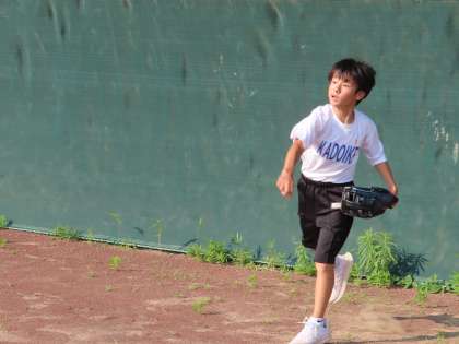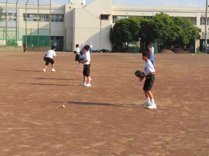 野球部に仮入部を見ました。一生懸命にボールを追っかけていました。キャッチボールもやさしく投げています。