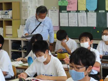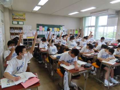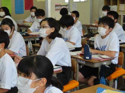 1Cは英語でした。支援員の関先生と一緒に授業をしました。「自分のことや相手のことを言う表現を理解する」が目標です。私は〜です。」の言い方の練習をしていました。
