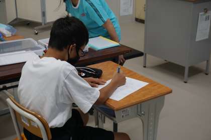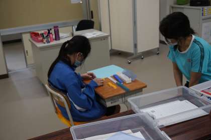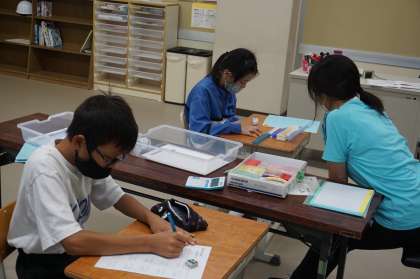 I組は数学の授業です。ブロックなどの教具を使って、自分で考えて問題を解いていきます。1問1問丁寧にやっています。