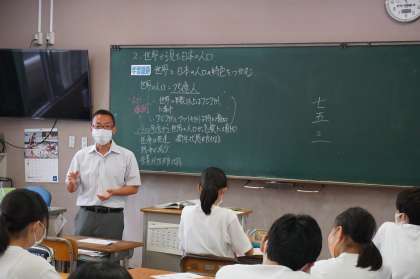 2Cは社会です。人口動態について考えています。日本の七・五・三がある理由について触れ、人口の増加について考えを深めています。