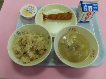 駿河湾のしらすご飯、ご当地グルメみたいです。えびフライもカラット揚がっていました。さくさくです。みそ汁もおいしくいただきました。