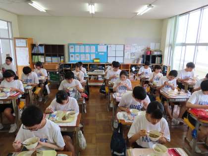 「あじのひもの」のしっぽまで食べられます。三年生は残しがありませんでした。全部食べていました。