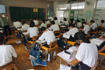 2Dの道徳は、渡邊先生が授業を行っています。「遠足で学んだこと」という資料を使い、意見がぶつかり合ってしまったときに、どのような行動をとればいいのかを考えています。自分と考えの異なるタイプの人からどんなことを学んだのでしょう。