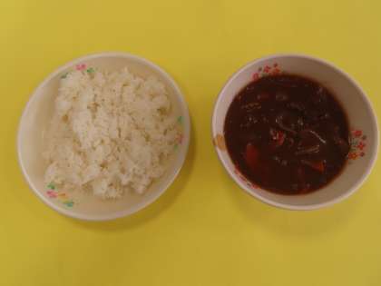 カレーと同じくらいの人気メニューです。お肉がたくさん入っており、うれしハヤシのルーです。