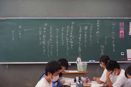 3Aは時田先生が勧めています。「心にしみこむ言葉の力」という資料を使っての授業です。この資料は、池上彰さんのエッセイを元にしてつくられています。