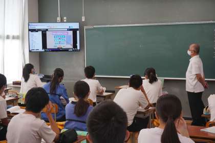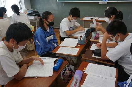 3Aは時田先生が勧めています。「心にしみこむ言葉の力」という資料を使っての授業です。この資料は、池上彰さんのエッセイを元にしてつくられています。