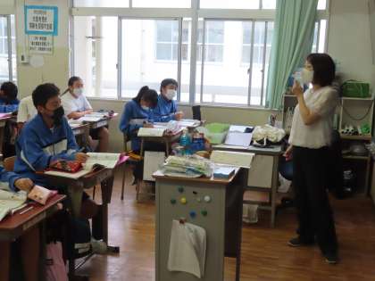 2Cは家庭科の授業です。生鮮食品と加工食品についての授業です。食品の保管場所としてどこが正しいのでしょう。乾燥食品…冷暗所 ほかにも冷蔵庫 冷凍庫 パーシャル(チルド)いろんな保管場所がありますが、生徒が一番知っていたのは「冷凍庫」でした。理由は「アイス」の入っている場所だからだそうです。