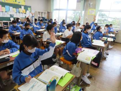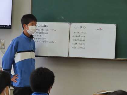 いろんなボランティアがあるが、ボーンティアに参加さする時の、大切な心構えとは何でしょう?ホワイトボードに書き込んでいきます。