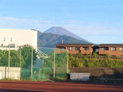 台風も過ぎ、延期となった体育祭。富士山も元気な頭を出してくれました。しかし、グランドは、全てのラインが消えてしまいました。