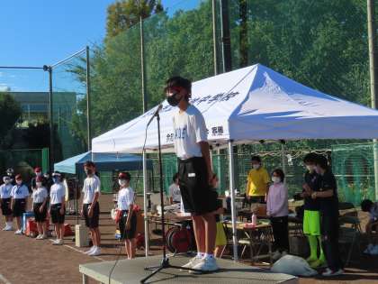 開会式、開会の言葉「3B飯田凱也さん」渓流祭実行委員長あいさつ「3B井口愛理沙さん」です。