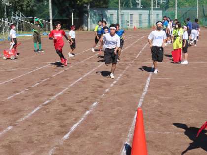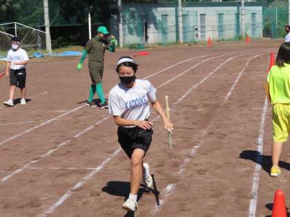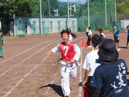 部活動リレーの様子です。剣道部は竹刀がバトンの代わりです。