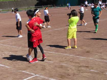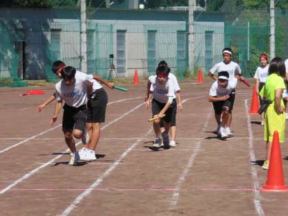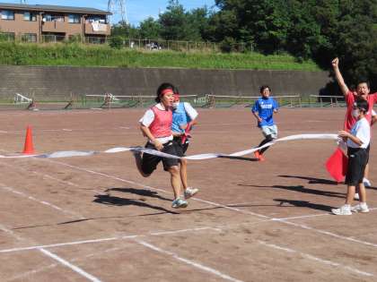 全員リレーの様子です。1年生はC組が優勝、2年生はA組が優勝、3年生もA組が優勝でした。
