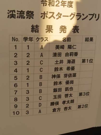 3位  玉田 啓太さん 3C でした。おめでとうございます。