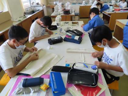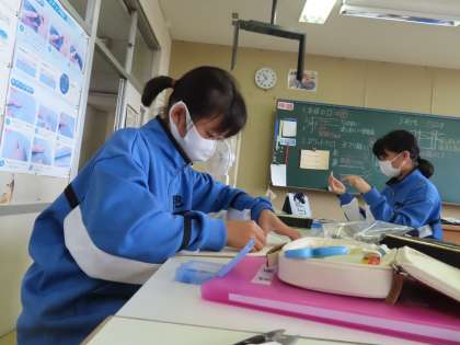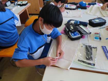 1Bが家庭科の授業を行っていました。1年生はトートバックを作るそうです。手縫いに苦労していました。小さな針穴に一回で糸を通している生徒が多かったです。