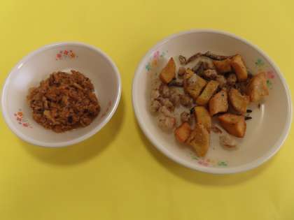 今日は中華麺での担々麺(肉味噌)です。スープの中に肉味噌と麺を入れて完成です。麺を全部入れると溢れてしまいます。麺も肉味噌も2等分にします。ポテト、大豆、小魚の唐揚げもちょうど良い塩加減でした。ごちそうさまでした。