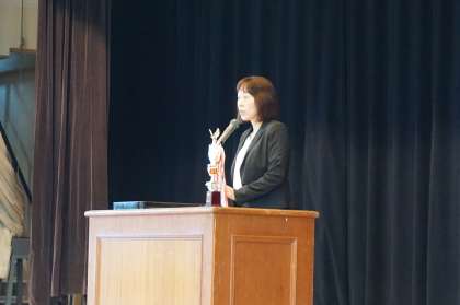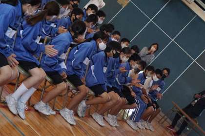 初めての合唱コンクールを終えて、満足そうな表情の1年生です。指揮者や伴奏者、パートリーダーへの感謝のあとに、近藤先生から曲の講評をいただきました。その後発表です。金賞はB組が受賞しました。