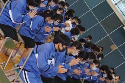 2年生の表彰です。近藤先生からの気持ちのこもった講評の後に結果が発表されました。銀賞2年D組、金賞は2年A組でした。どのクラスも中間発表の時からずいぶん上達していました。来年が楽しみです。