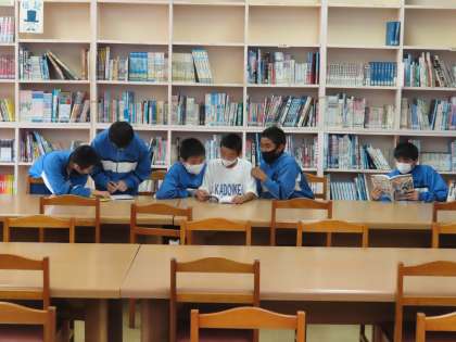 昼練習と図書室の様子です。たくさんの本とふれあいましょう。