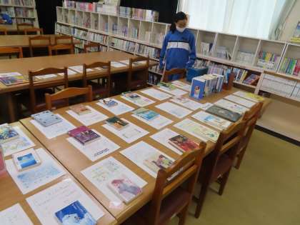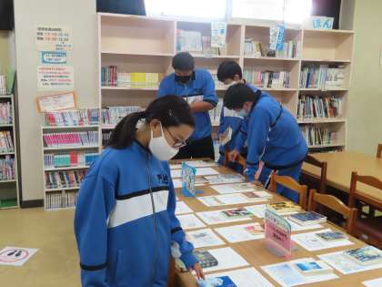図書室の様子です。1年生が多く読書をしていました。新書の紹介を熱心に見ている生徒もいました。