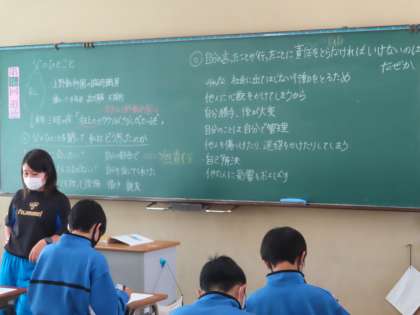 1Bの授業は栗田先生です。動物園に勤務していた主人公の話です。「父のひとごと」です。動物園を休んだときに父が「おまえのカワウソ寂しそうだったぞ」この言葉で主人公はどう思ってのでしょう。最後は自分の言ったことやったことに責任を取るとは?どんなことでしょうと考えていました。