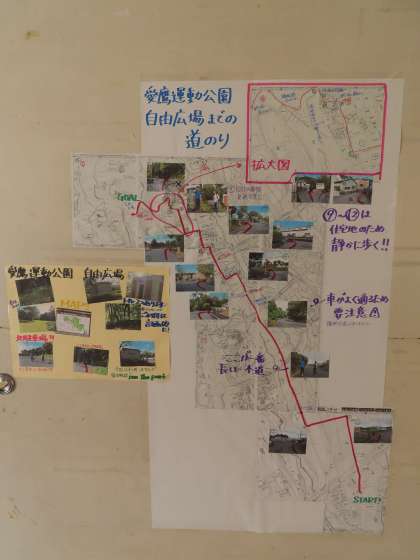 11月に出かける遠足のコースが掲示されています。先生達が実際に歩いて写真に撮ってきてくれました。
