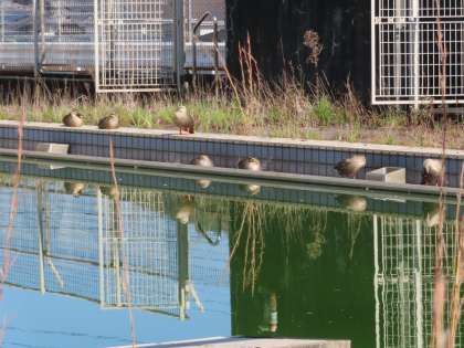今日はポカポカ陽気です。毎日プールに鴨が来るのですが、今日は多くのお客様でした。気持ちよさそうに休んでいます。