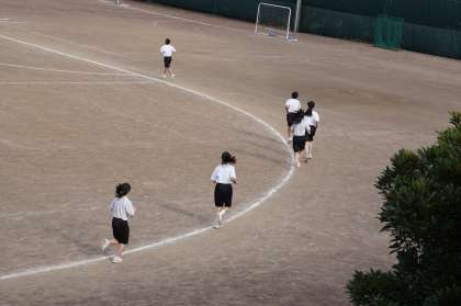 2Cは保体です。持久走を行っています。目標タイムやペースを伝える大きな声が聞こえてきます。とてもいい雰囲気です。