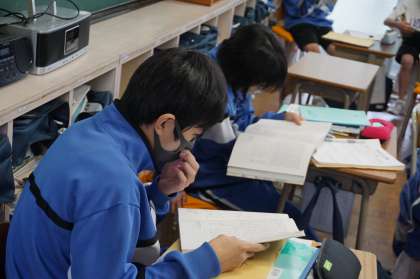 しっかりと声を出して読んでいます。
