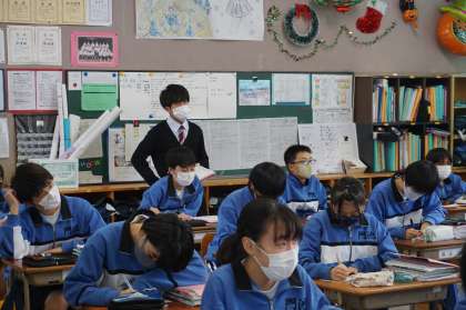 2Bの国語は、最初にスピーチの発表の様子です。内容は犬や猫の雑学についてです。チワワやパグの名前の由来や、猫の生態などとても詳しく調べてあり、聞く方を飽きさせません。話し方もとても上手です。