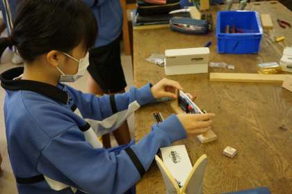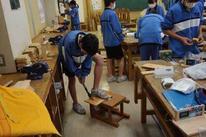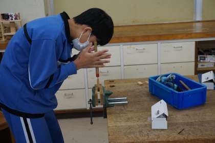2Dは技術です。アラーム付きクロックの作成です。それぞれ進み具合が違うので、様々な作業をしています。完成間近です。