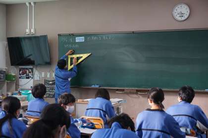 2Cは数学です。今日から四角形の学習に入ります。最初に平行四辺形を扱います。まずは、小学校で学んだ知識をもとに、平行四辺形を書いていきます。
