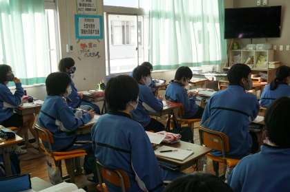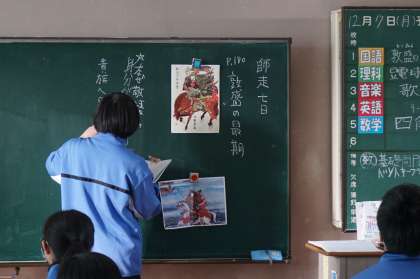 2Bは国語です。敦盛の最期の内容に入っています。熊谷次郎直実が敦盛に対して敬語を使った理由について考えています。このことから考えられることがたくさん出てきています。