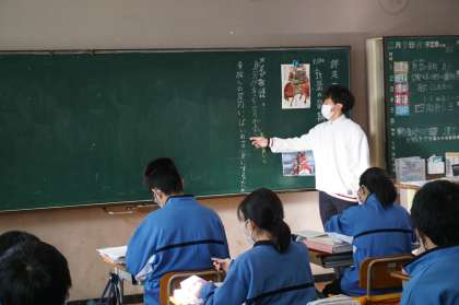 2Bは国語です。敦盛の最期の内容に入っています。熊谷次郎直実が敦盛に対して敬語を使った理由について考えています。このことから考えられることがたくさん出てきています。