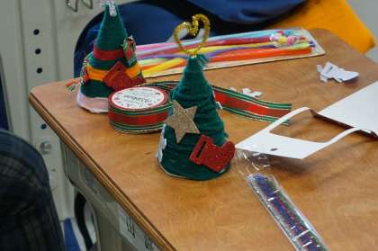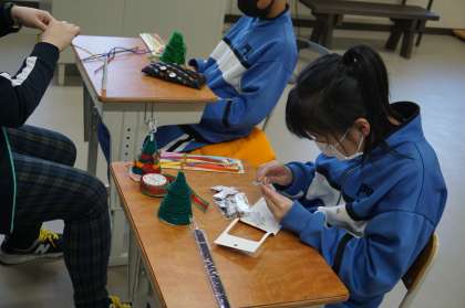 I組は美術です。クリスマスツリーの制作の続きです。ツリーの本体はできたようです。これから飾り付けをしていきます。完成が楽しみです。