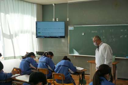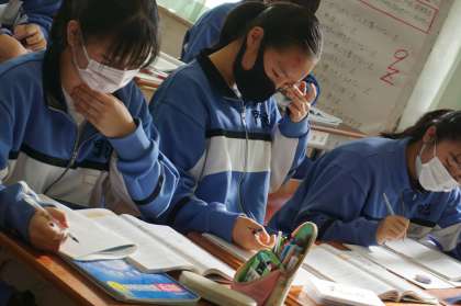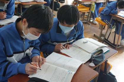 3Aは数学です。相似比と面積比の関係を考えています。真剣な表情です。