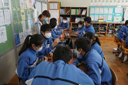 3Cは英語です。分詞や関係代名詞を使った、ものの説明です。手始めとしてThis is something that〜につなげる文を考えていきます。その後グループになり、説明文をつくっていきます。
