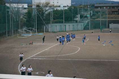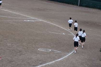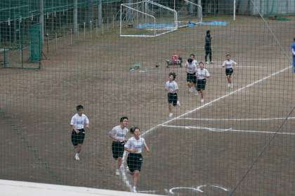 2Bは保体です。持久走をやっています。苦しい中でも力を振り絞っています。タイムやペースを伝える声も聞こえてきます。