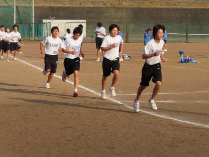2Aはグランドで体育の授業です。2000m走を行っていました。ランナーをみんなで応援しながら走っていました。そして、2組目がスタートしました。
